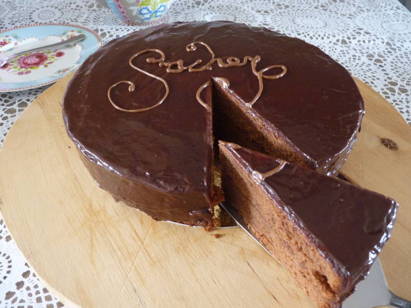 Luchtige chocoladecake gevuld met een laagje abrikozenjam. Omhuld met chocoladeganache.